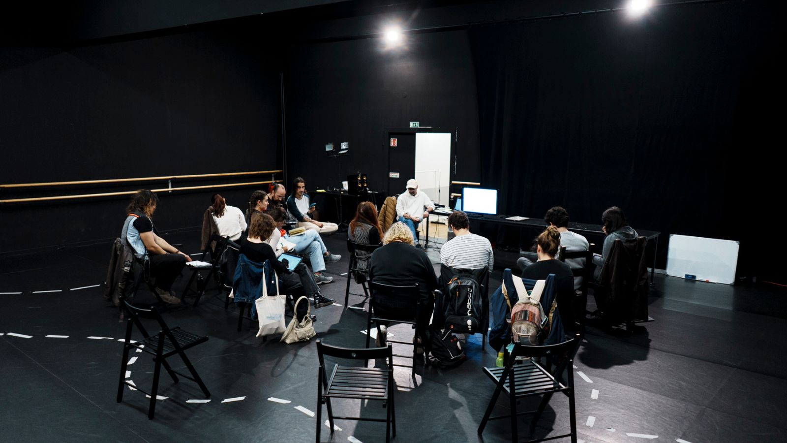 Far from being mere spectators, participants are invited to read, think, and respond together, immersing themselves in the dense and ironic atmosphere of the play.
